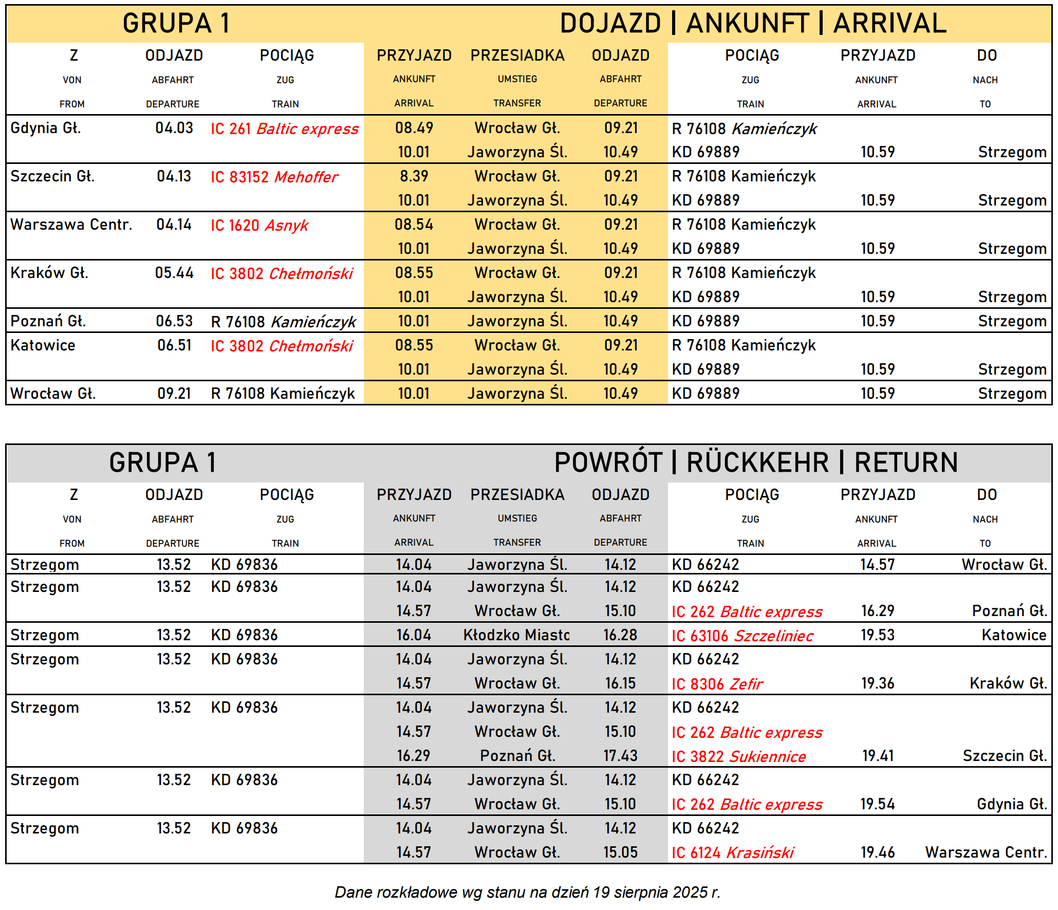 🕒 Godzina zbiórki grupy 1: 11:15