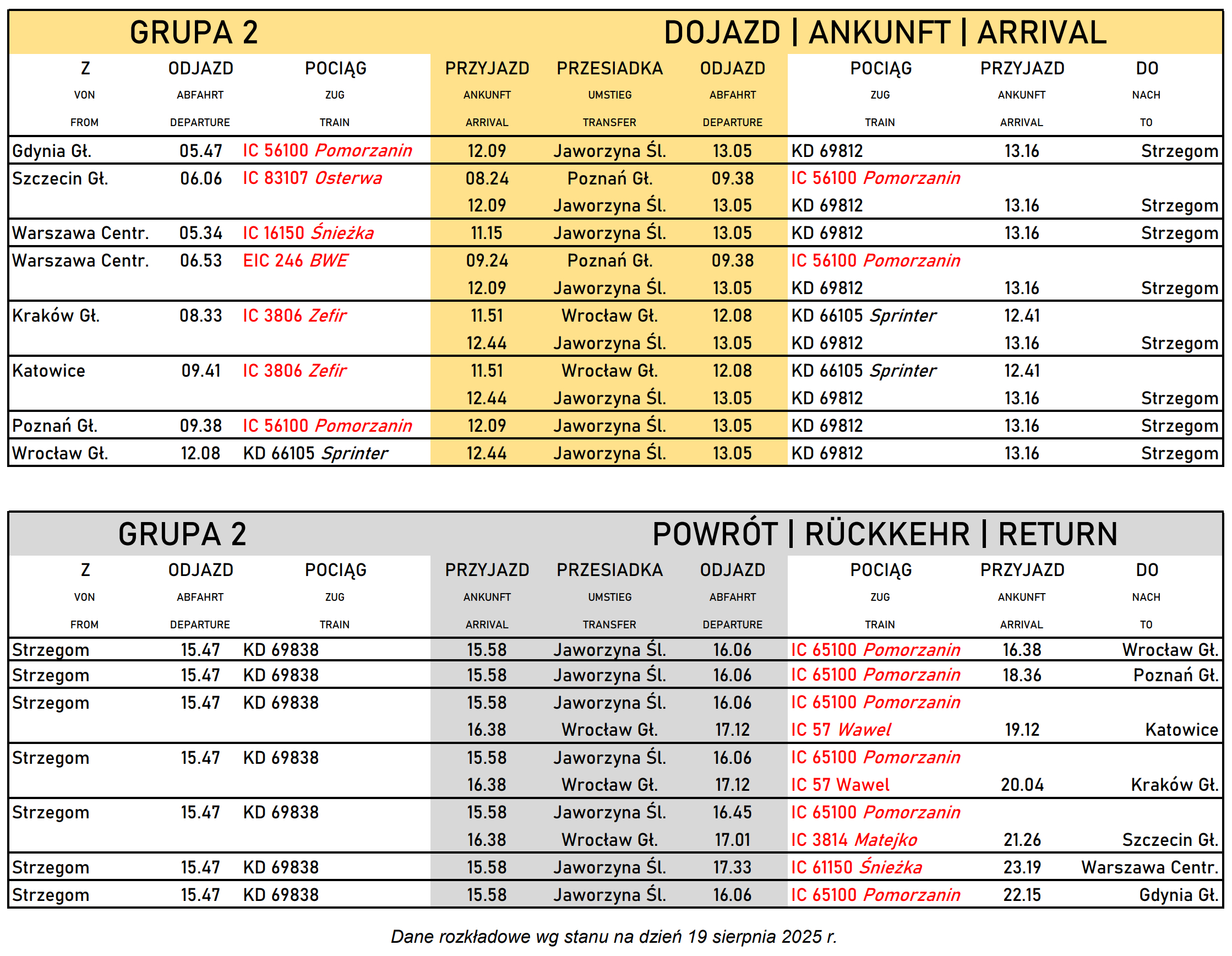 🕒 Godzina zbiórki grupy 2: 13:30