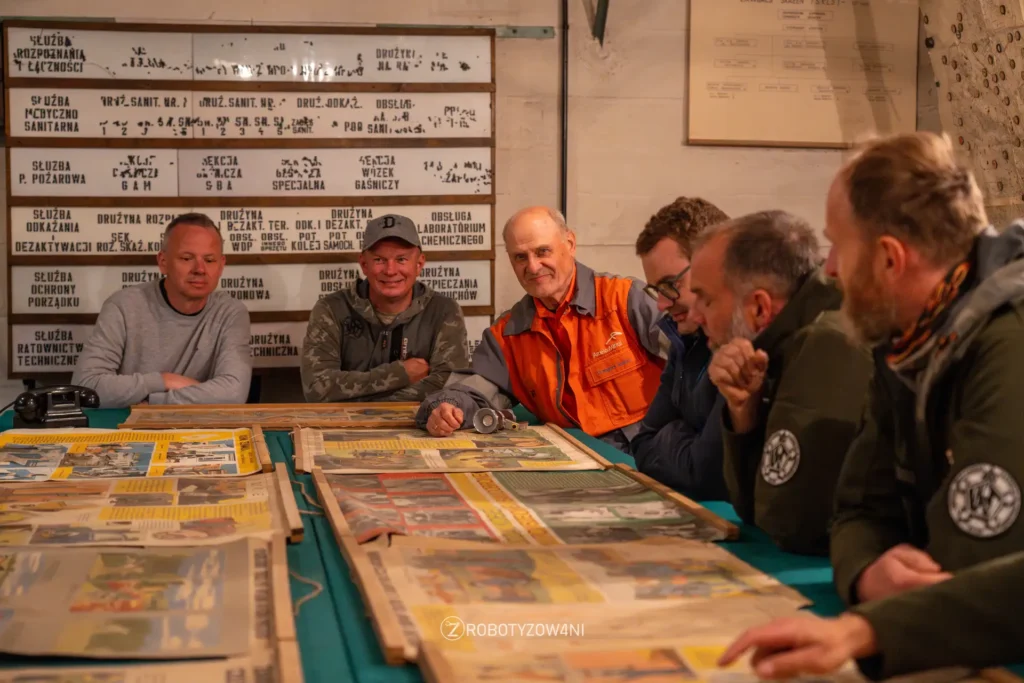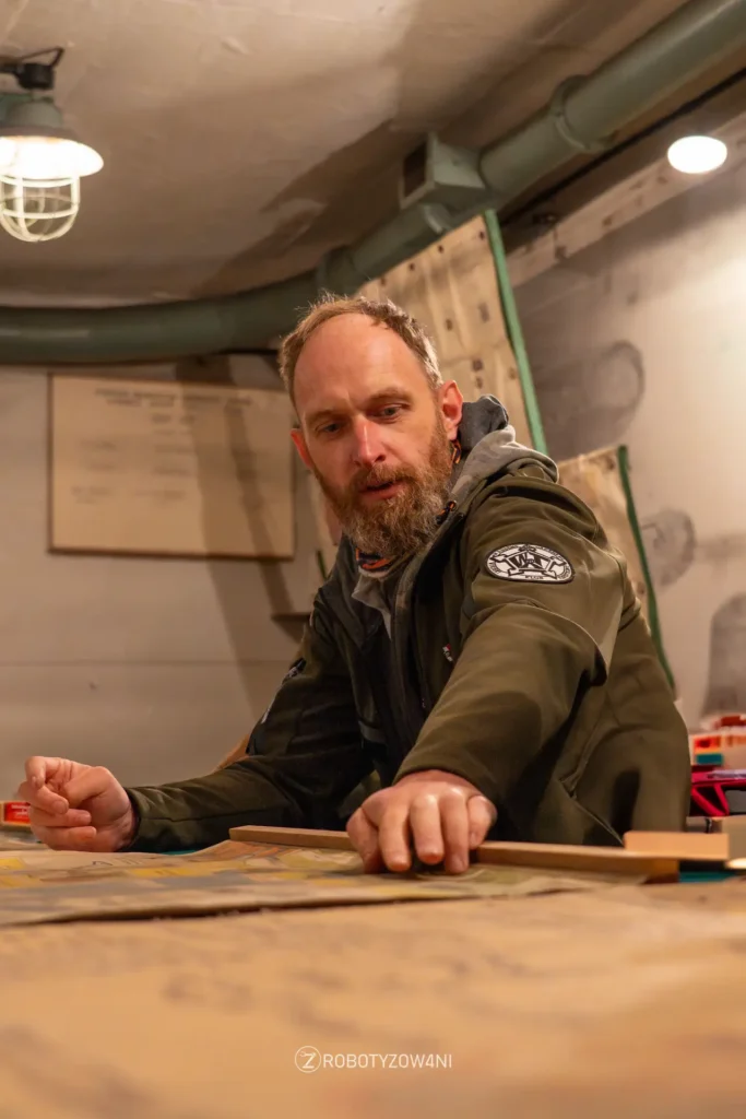 Kiedy już poznaliśmy każdy etap produkcji stali – od złomu aż po gotowe wyroby – czekała na nas jeszcze jedna niespodzianka. Zanim opuściliśmy teren huty, zeszliśmy dwa piętra pod ziemię, by zwiedzić doskonale zachowany schron przeciwatomowy z czasów zimnej wojny. Te podziemne Stanowisko Dowodzenia Obrony Cywilnej, ukryte pod biurowcem huty, to prawdziwa kapsuła czasu. Obiekt powstał na przełomie lat 50. i 60. XX wieku i do dziś zachował się w stanie niemal nienaruszonym, wraz z pełnym oryginalnym wyposażeniem. Gdy tylko przekroczyliśmy masywne pancerne drzwi, przenieśliśmy się kilka dekad wstecz. Wąskie korytarze o betonowych ścianach, stare aparaty telefoniczne, ręcznie kreślone schematy na tablicach i zastygłe w bezruchu wskaźniki urządzeń – wszystko to tworzyło niesamowity klimat. Przewodnik opowiedział nam, że ten schron pełnił funkcję Stanowiska Dowodzenia Obrony Cywilnej na wypadek konfliktu nuklearnego. Był samowystarczalny, wyposażony w potężny agregat prądotwórczy, system filtracji powietrza, zapasy żywności i wody oraz centrum łączności. Uczestnicy z zaciekawieniem zaglądali do poszczególnych pomieszczeń: sali operacyjnej, sypialni załogi, węzła sanitarnego czy maszynowni. Dla młodszych uczestników było to jak żywa lekcja historii – wielu po raz pierwszy widziało na własne oczy taki obiekt, o którym wcześniej tylko czytali. Starsi członkowie WKT wspominali czasy szkolnych ćwiczeń OC i z przejęciem dotykali sprzętów pamiętających tamtą epokę.